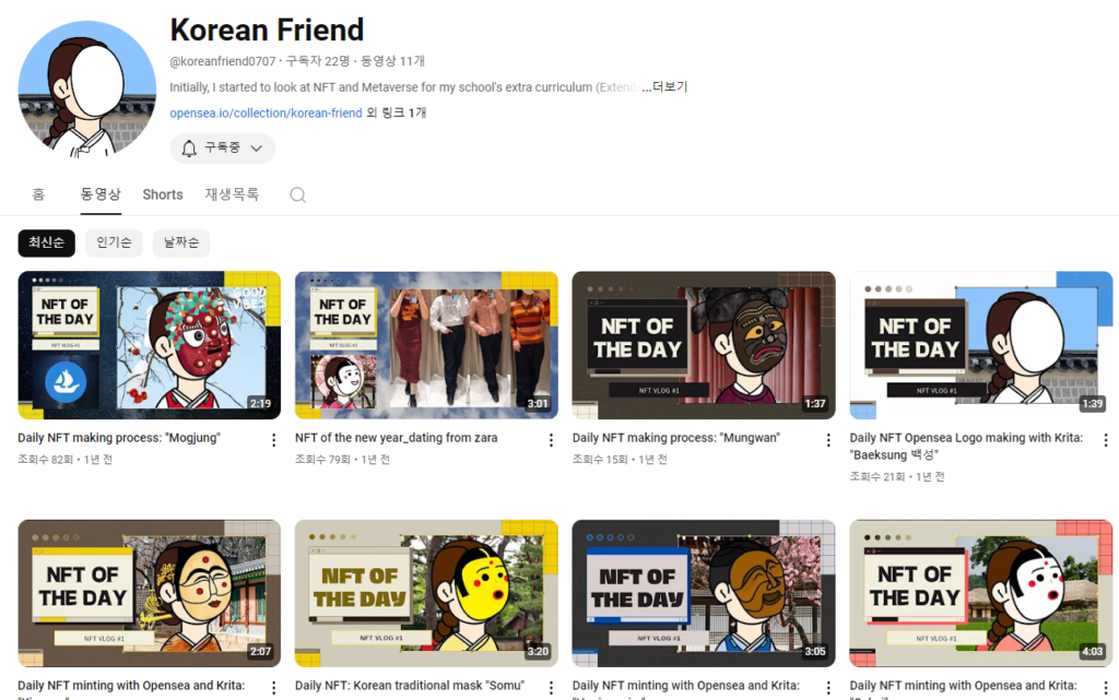 YouTube channel for marketing the NFT collection
